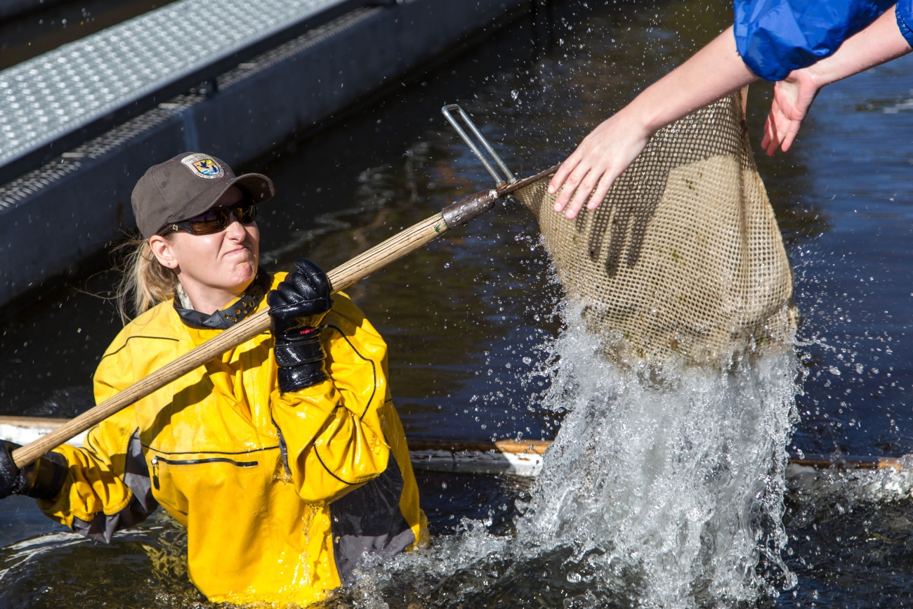Stocking fish to replenish at Leadville National Fish Hatchery.