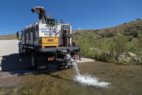 Stocking fish to replenish at Leadville National Fish Hatchery.