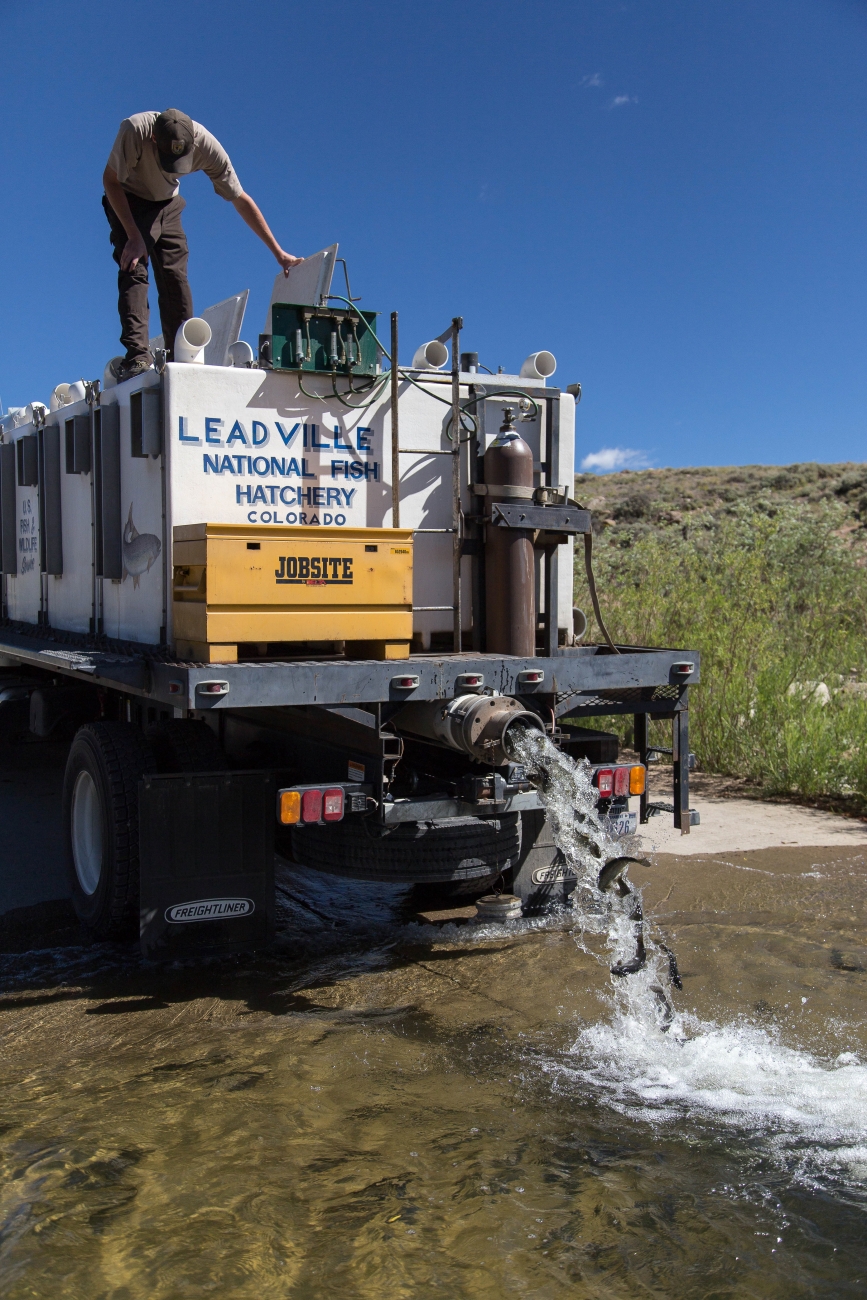 Stocking fish to replenish at Leadville National Fish Hatchery.