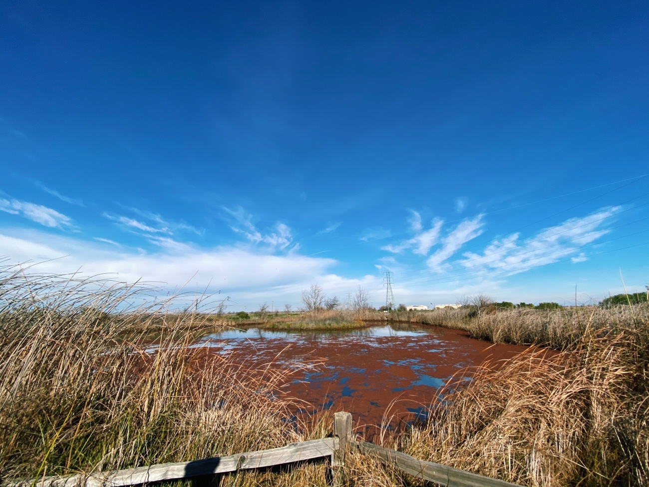 Azolla (Azolla filiculoides) covered wetland at Stone Lakes NWR, California.