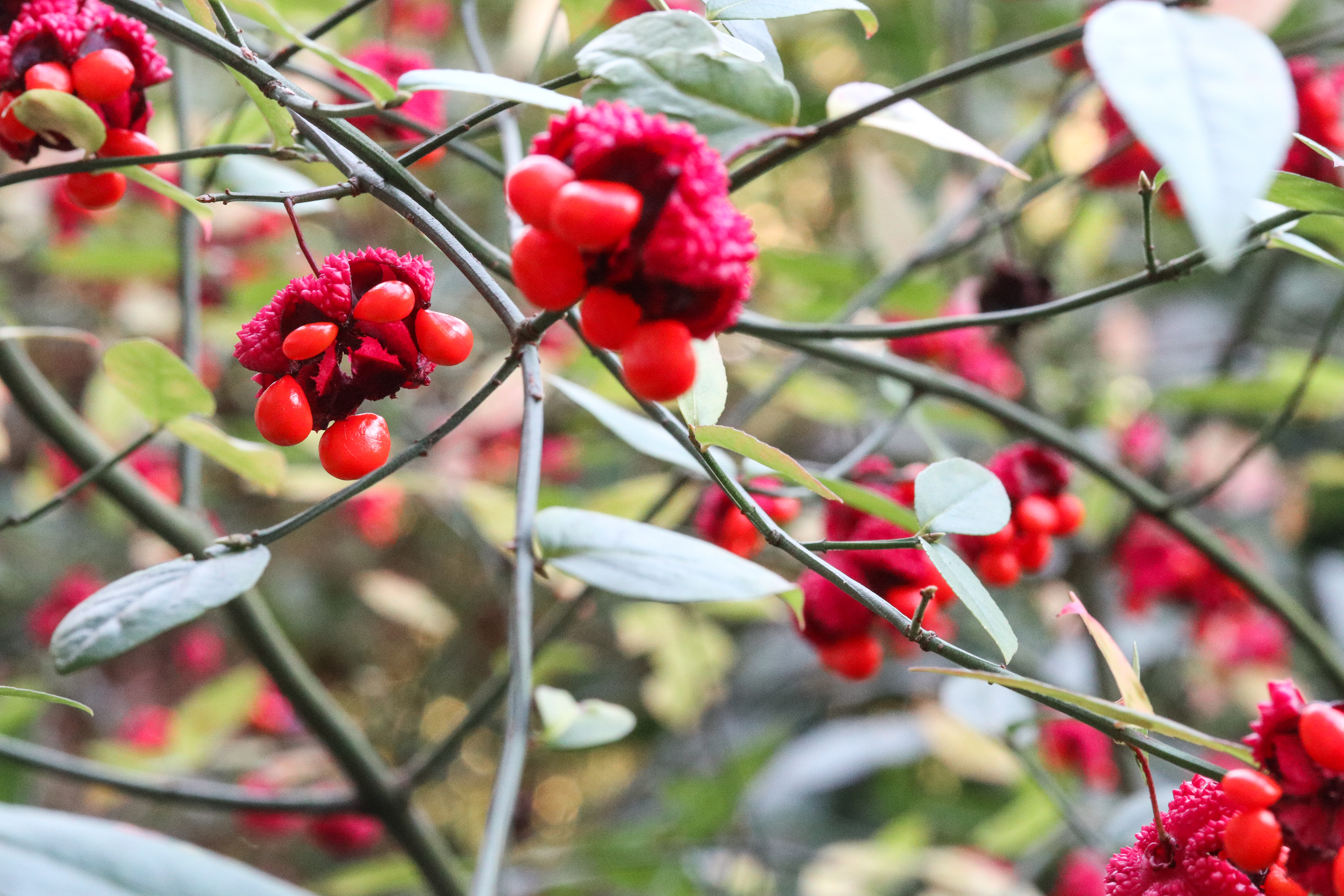 Strawberry bush releasing fruit at the Asheville Field Office pollinator garden, Buncombe County, N.C.