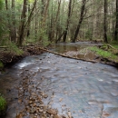 Stream slowly flowing through the woodlands in spring