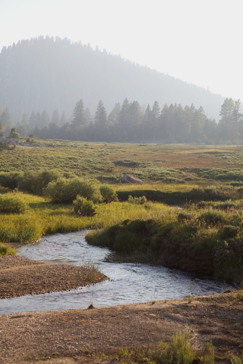 Stream through Sierra Nevada high alpine meadow