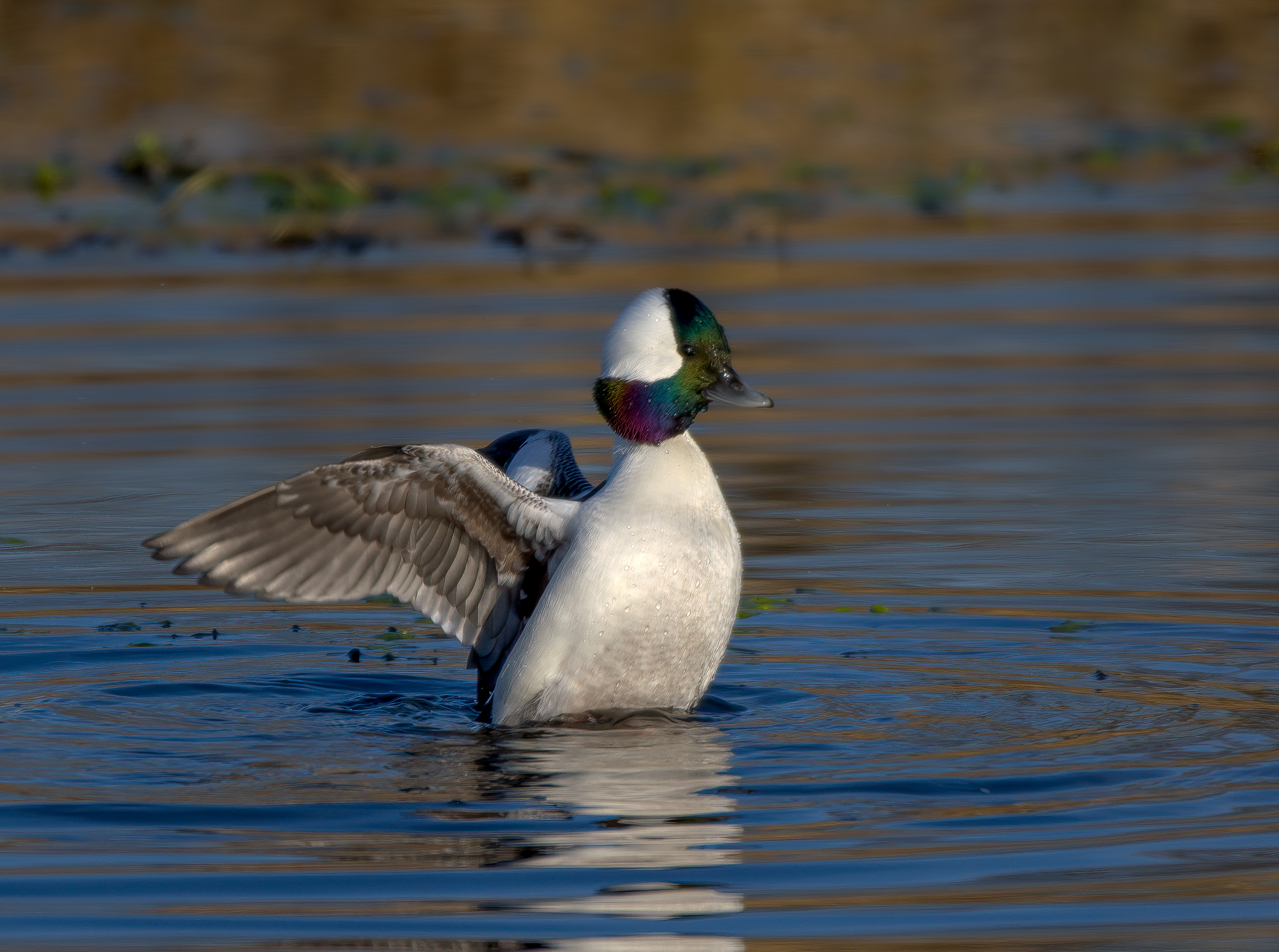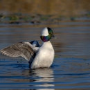 Bufflehead taking a stretch at Ridgefield National Wildlife Refuge. This particular waterfowl bobs for food.