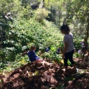 Student and volunteers hike along a trail at Kōkeʻe Park in northwestern Kauaʻi in the Hawaiian Islands,