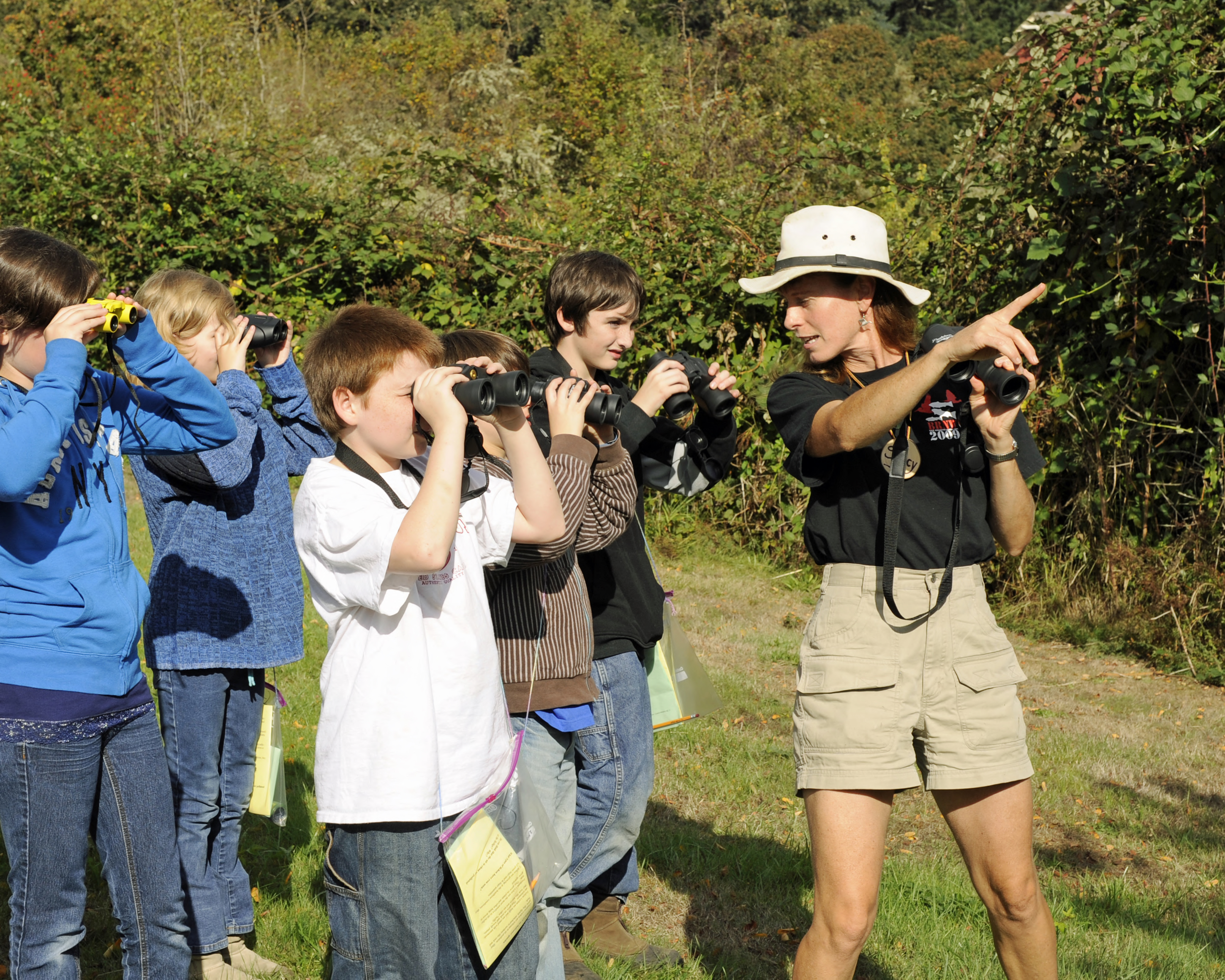 Students look for birds with their binoculars on the William L. Finley National Wildlife Refuge.
