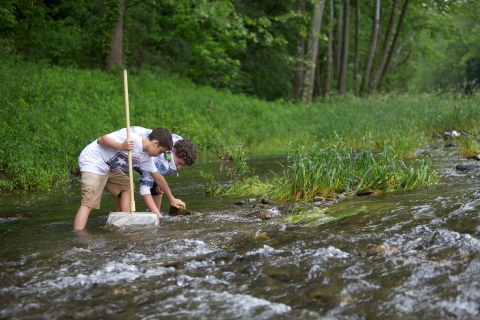 Students look for macroinvertebrates