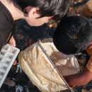 Students pulling invertebrates from a kick net
