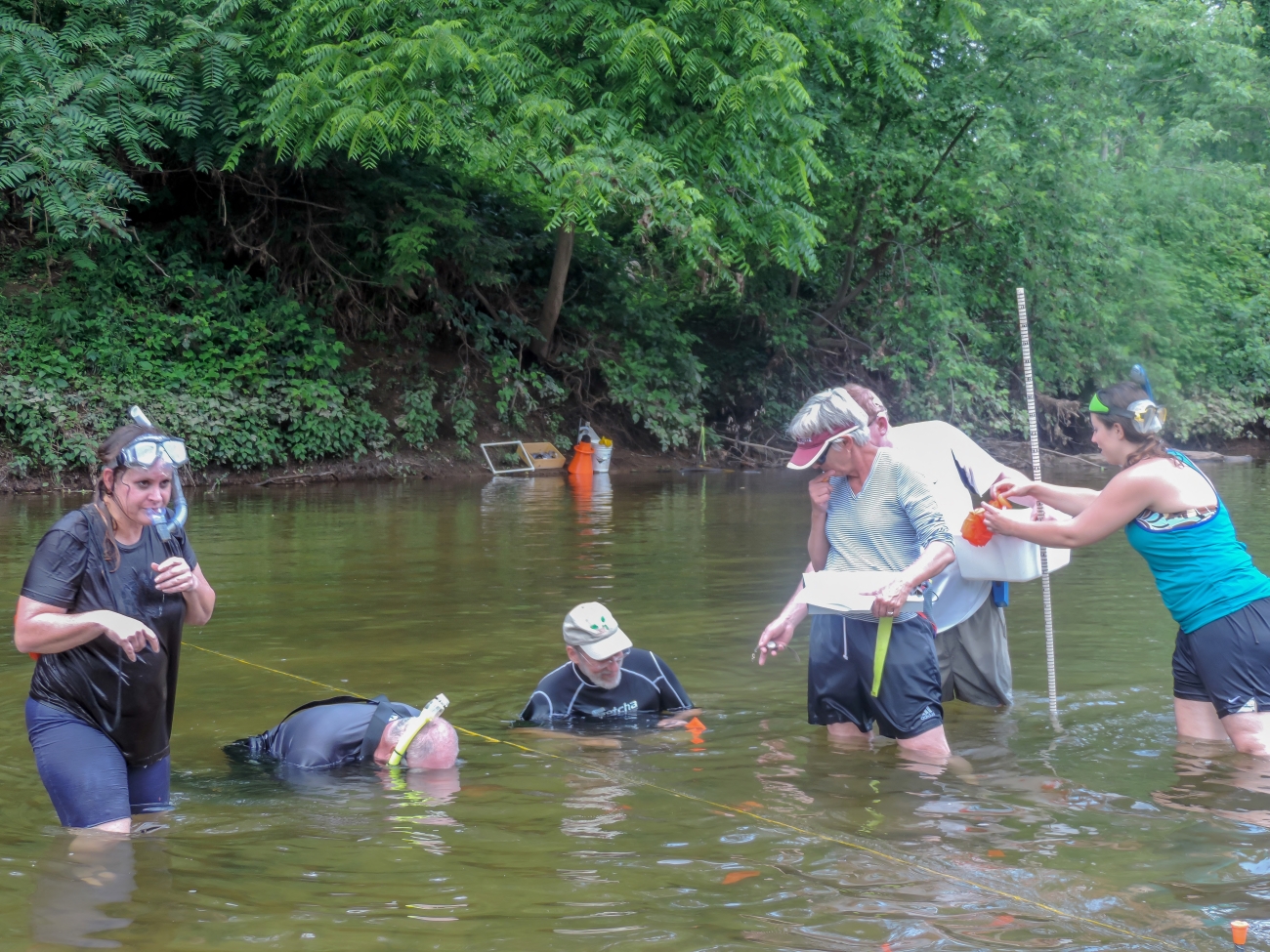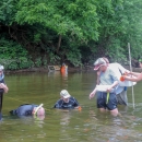 Students surveying freshwater mussels in the Cacapon River, WV.