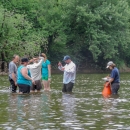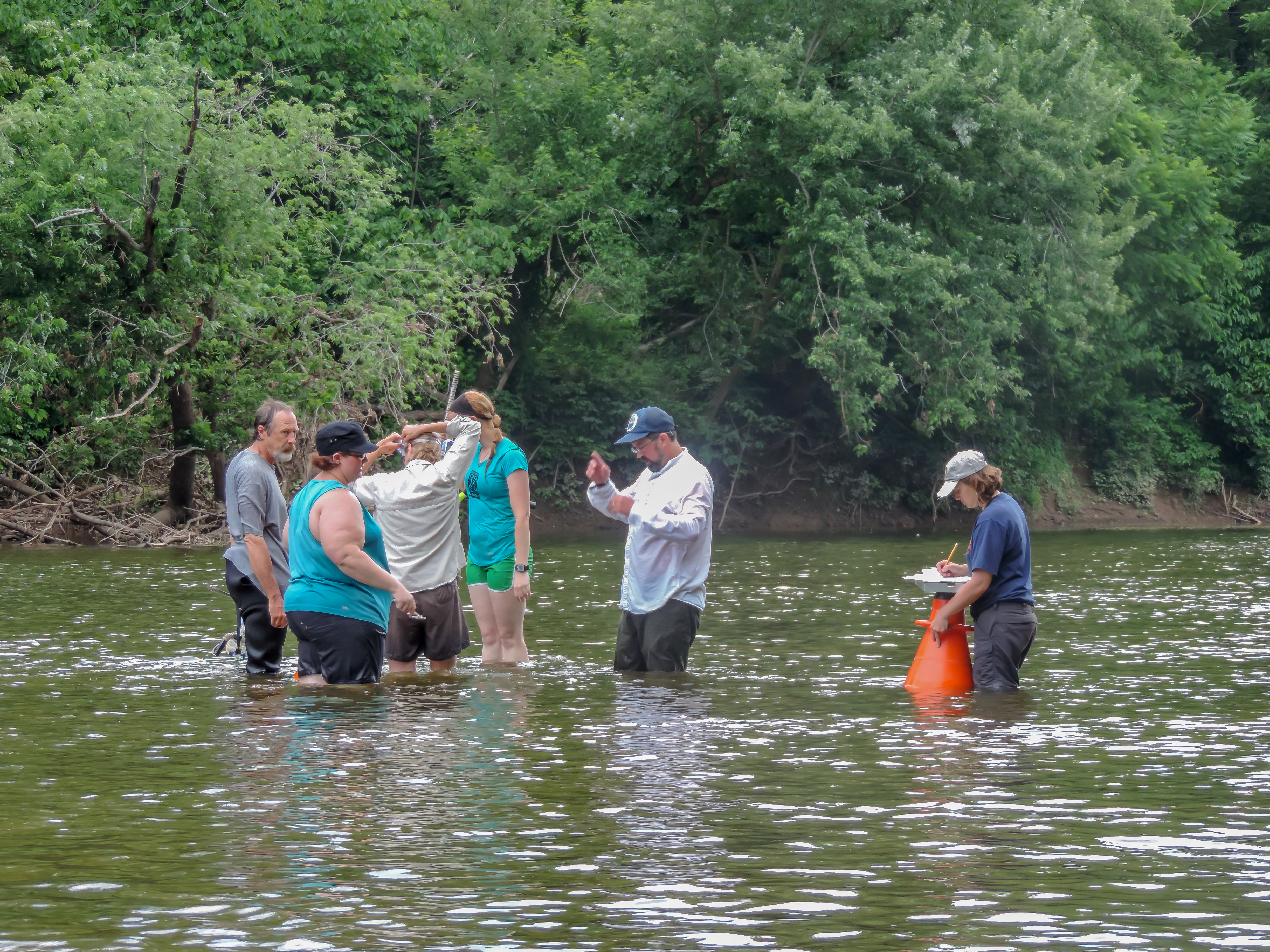 Students surveying freshwater mussels in the Cacapon River, WV.