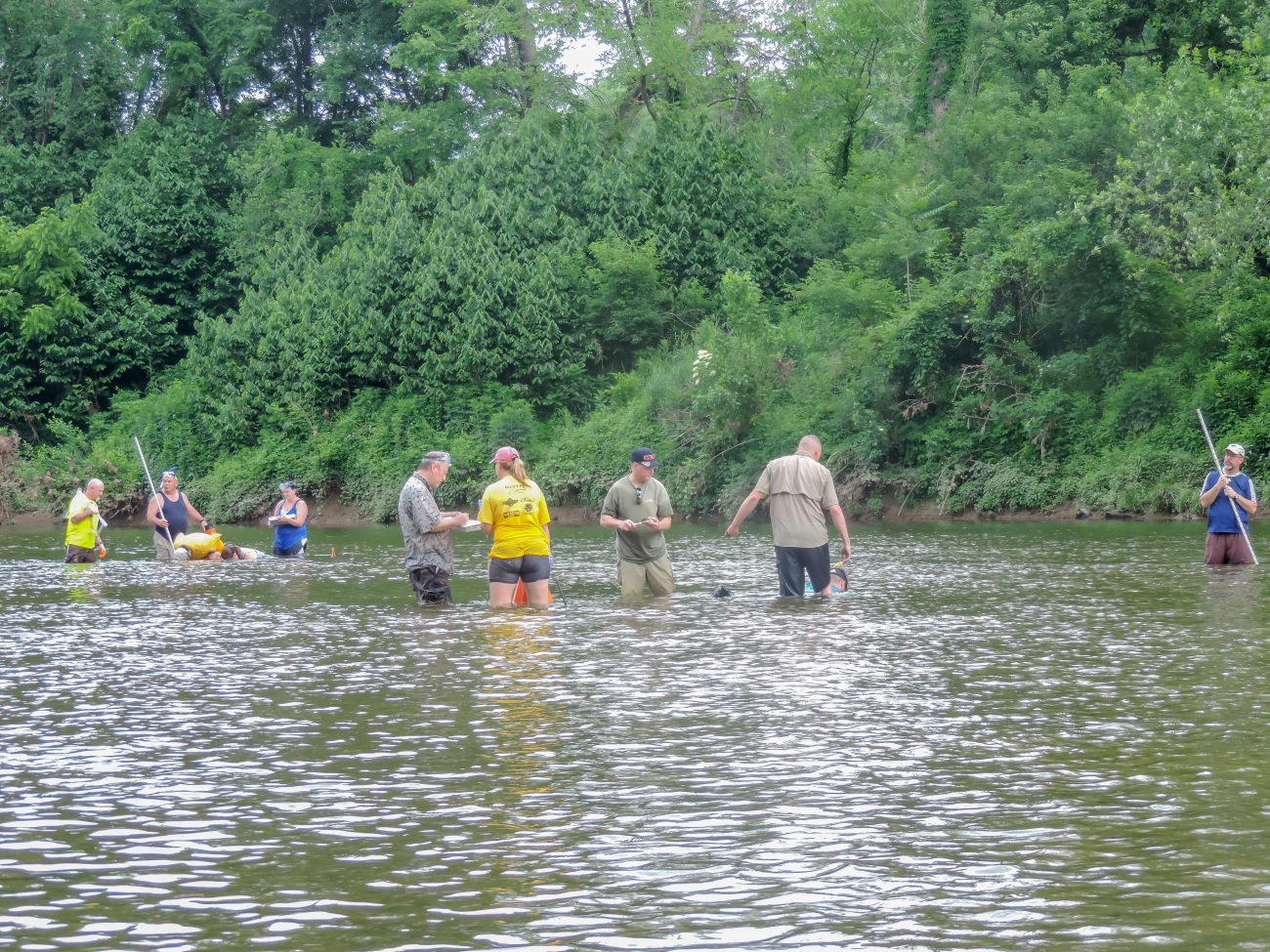 Students surveying freshwater mussels in the Cacapon River, WV.