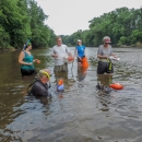 Students surveying freshwater mussels