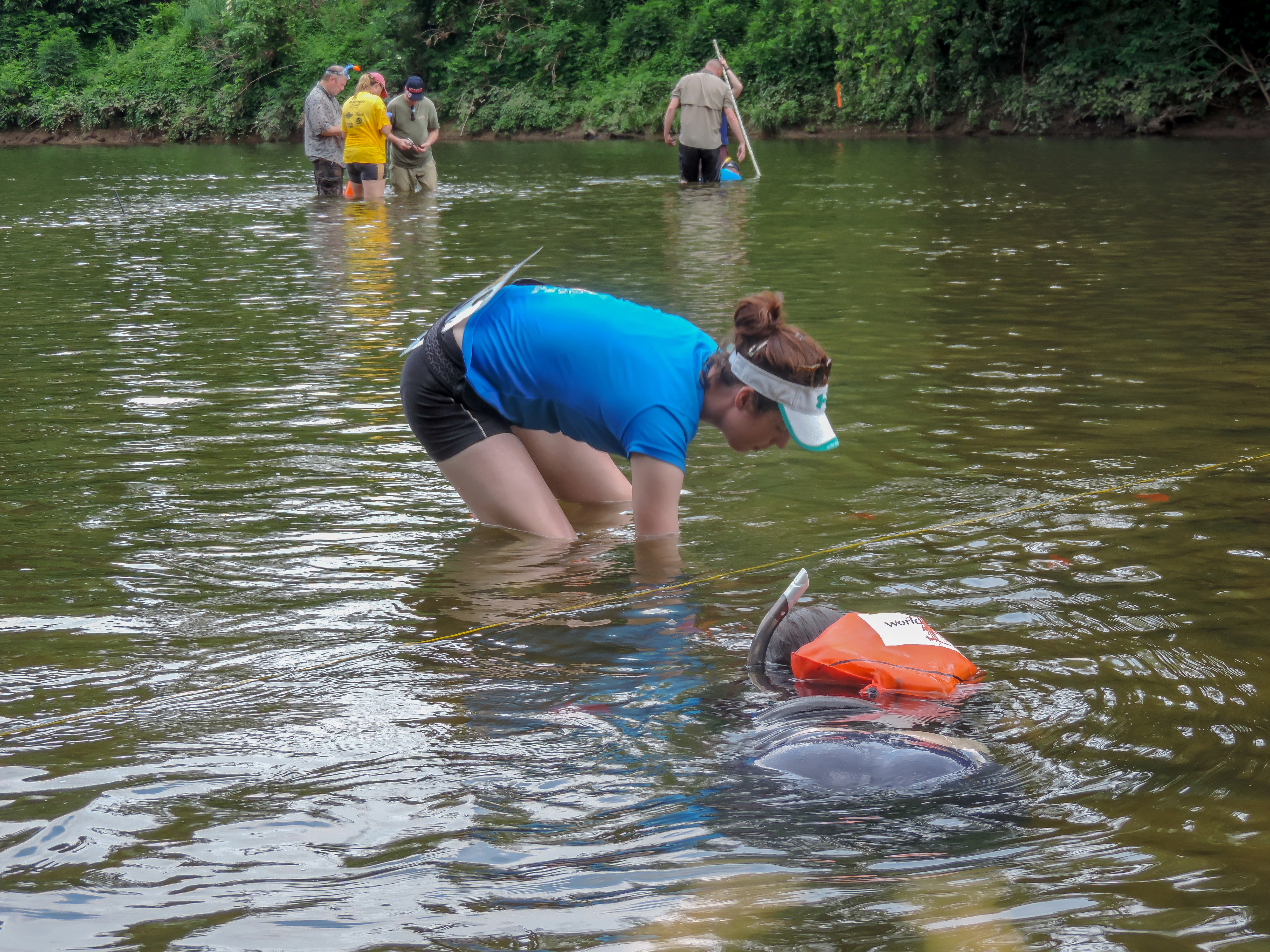 Students surveying freshwater mussels in the Cacapon River, WV.