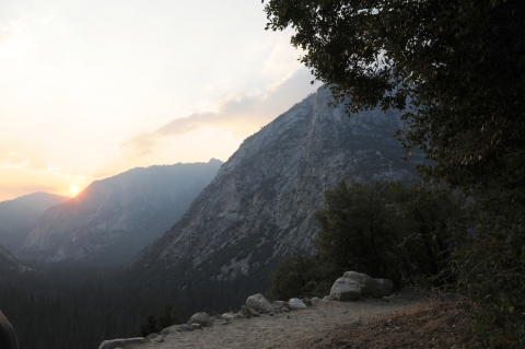 Sun setting behind mountains