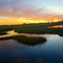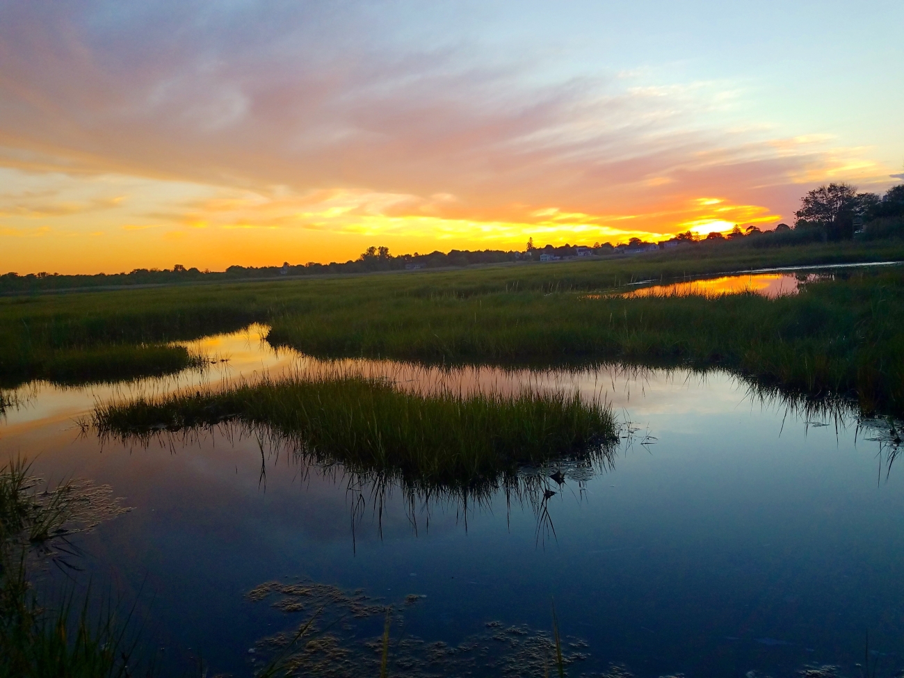 The sun rises over a marsh at Rachel Carson National Wildlife Refuge in Maine.