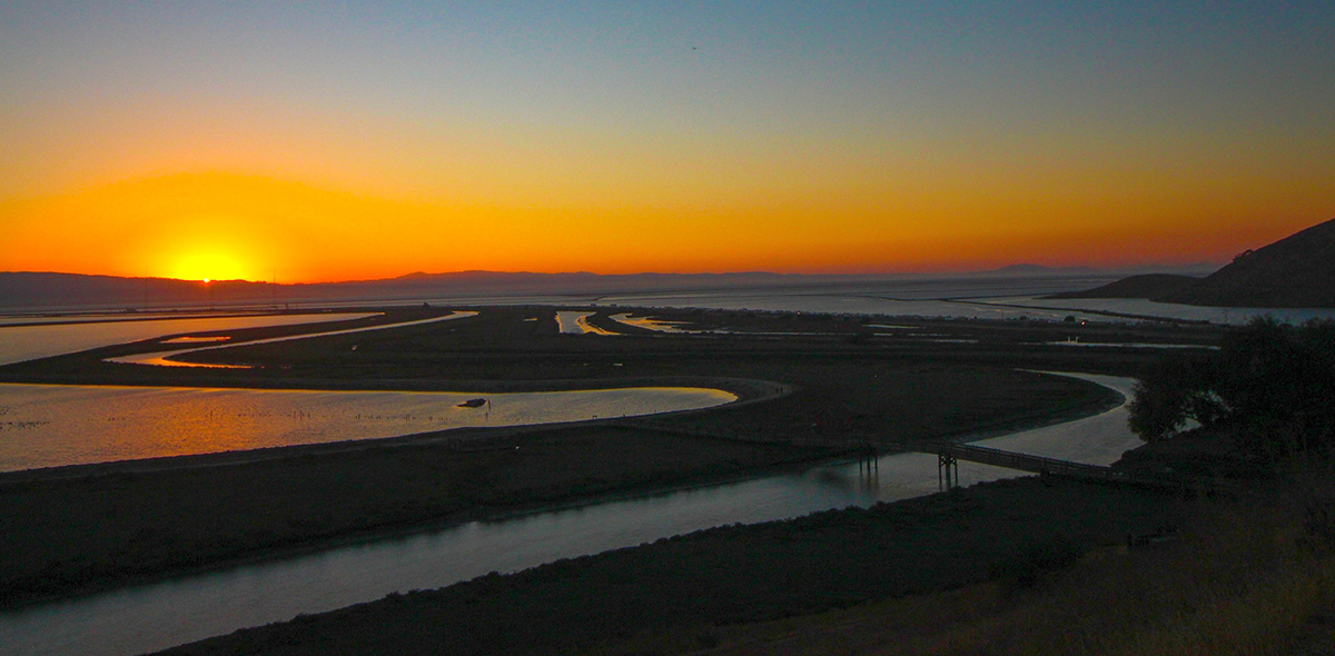 Sunset over the Don Edwards San Francisco Bay National Wildlife Refuge.