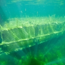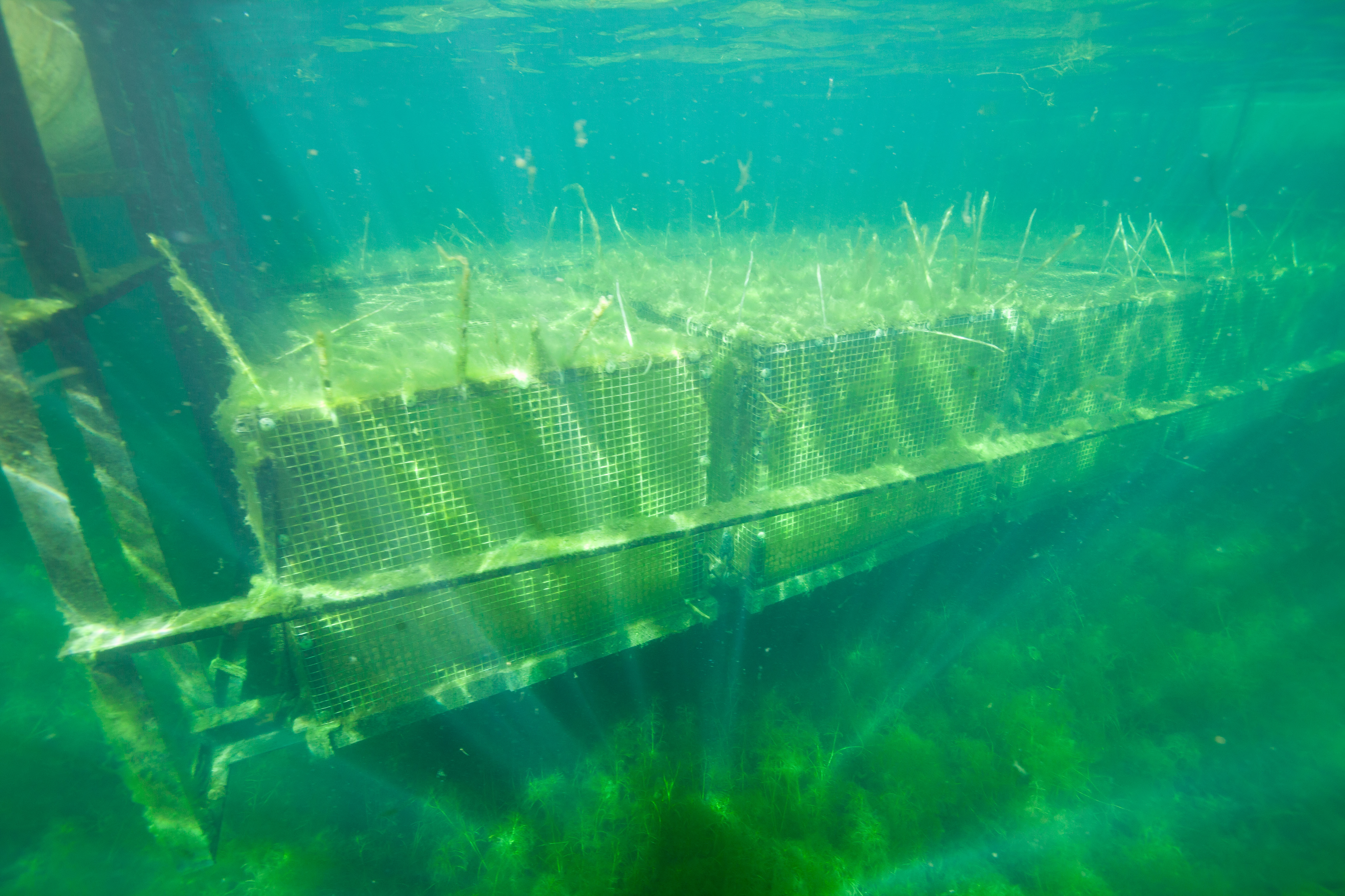 Cages hold host fish that are infested with young freshwater mussels. The mussels live on the fish and then drop off to live in the sand that is placed on the bottom of the cages.