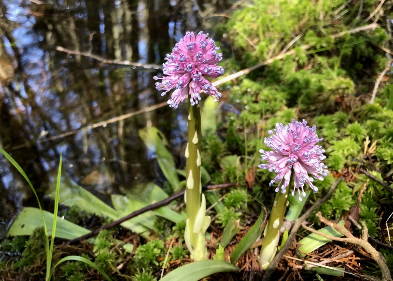 Swamp pink (Helonias bullata) grows in an Atlantic white cedar swamp.