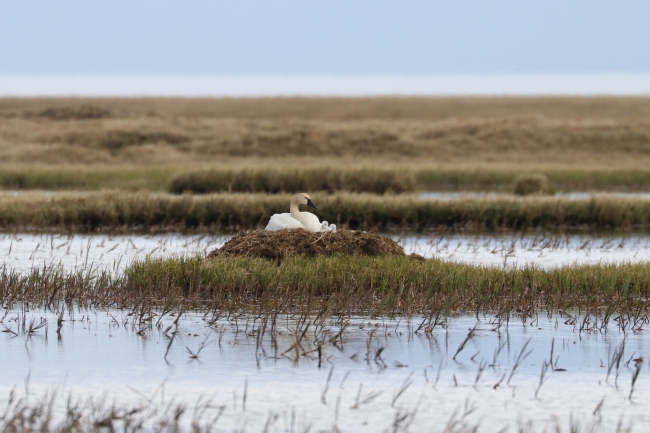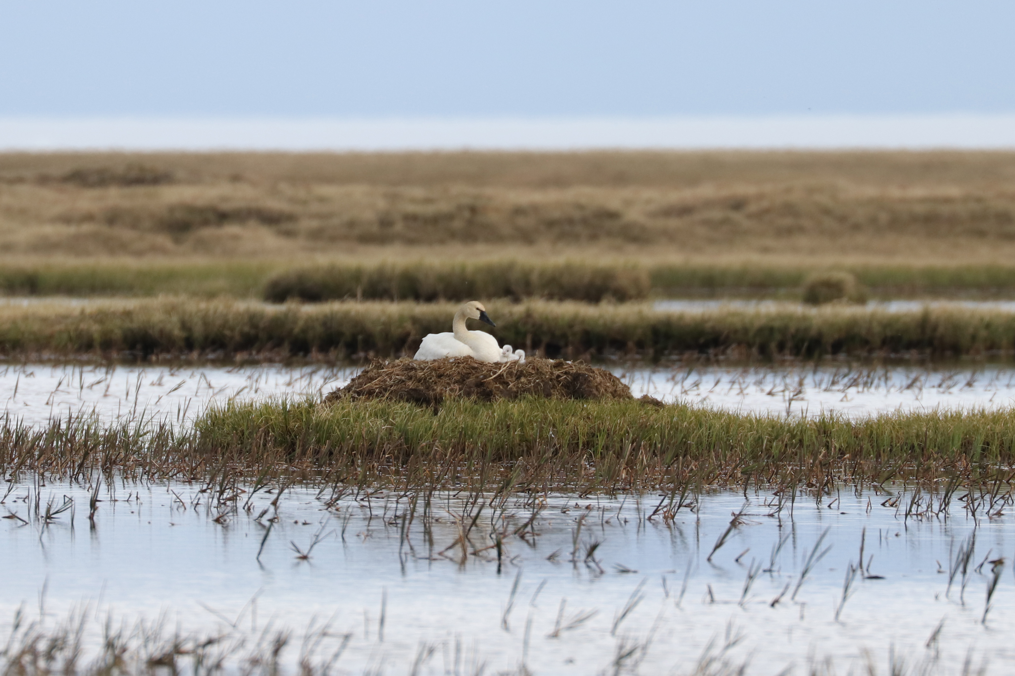 A swan on its nest at Arctic National Wildlife Refuge in Alaska.