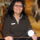 Sylvia shows visitors how to bead at the Tetlin National Wildlife Refuge Visitor Center.