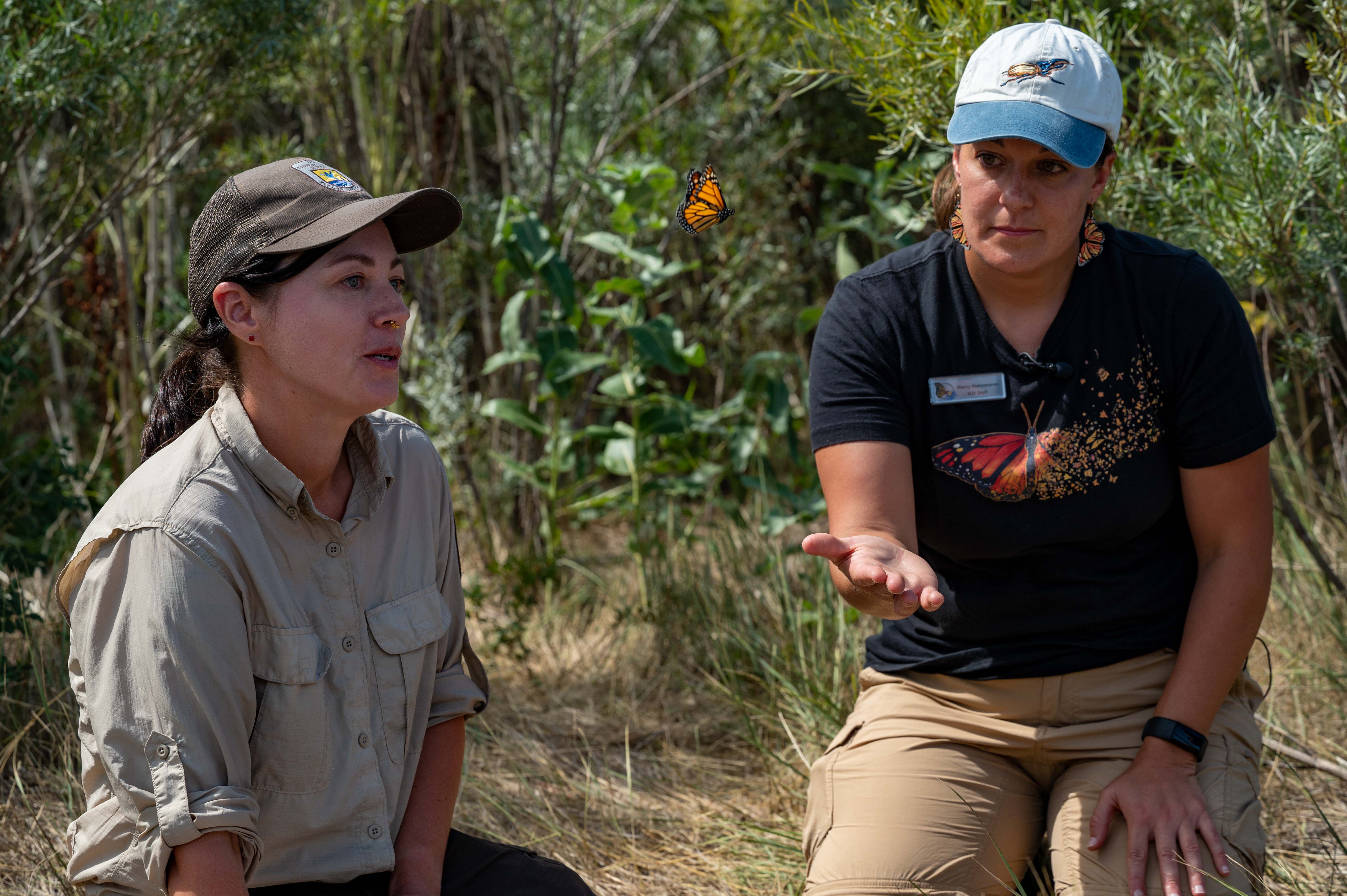 Staff form the U.S. Fish and Wildlife Service and Monarch Joint Venture tag and release a monarch Buckley Space Force base, August 29, 2024. U.S. Space Force Photo by Senior Airman Joshua Hollis