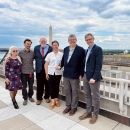 Team from the National Oceanic and Atmospheric Administration's Fisheries-Oikonos Seabird Bycatch Project pose with their award in front of the D.C. Washington Monument