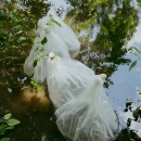 Bags containing endangered Barrens topminnows floating in the native water of the species, tempering the fish before being released.