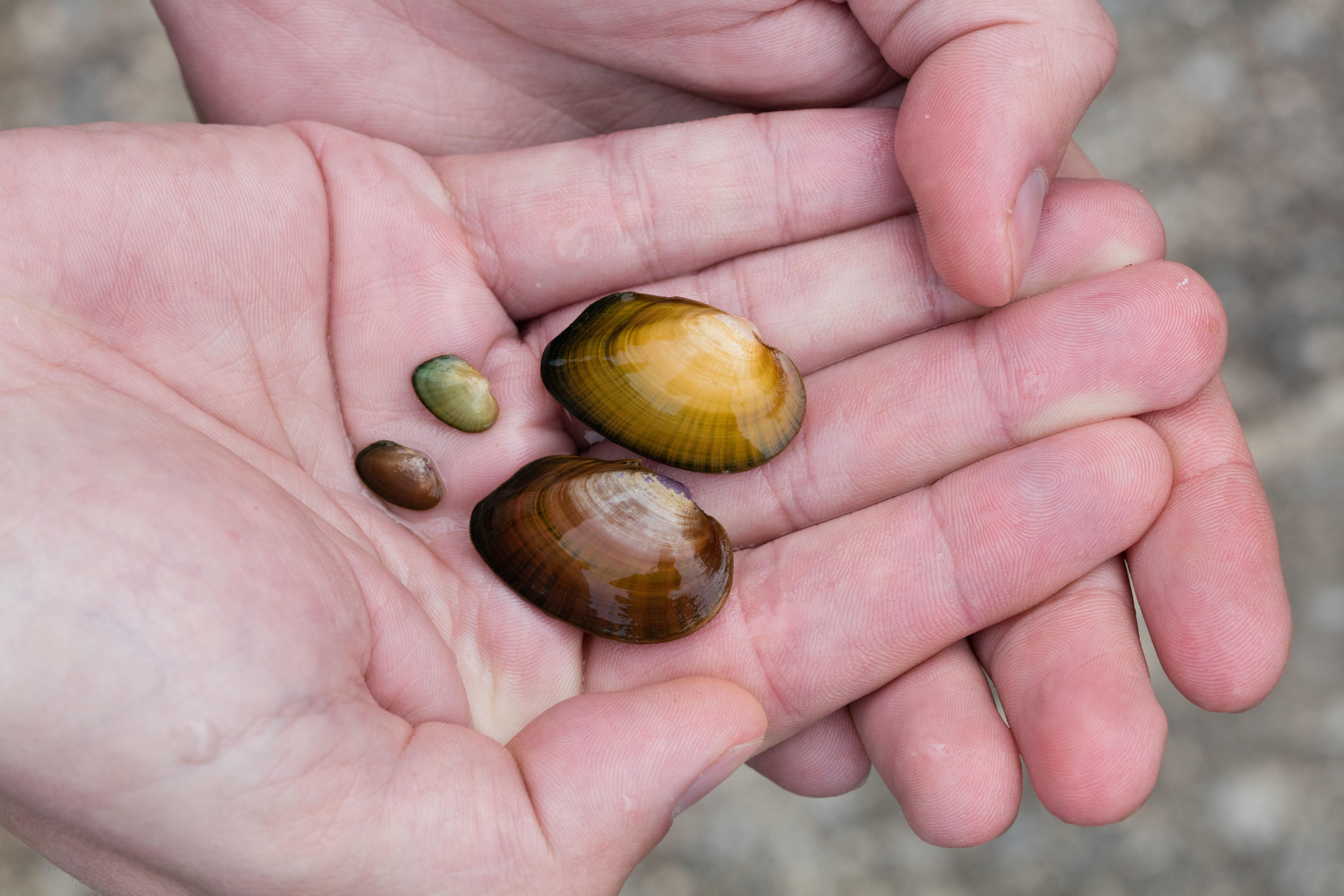DOI partnership with the Aquatic Wildlife Conservation Center, Clinch River, near Marion, Virginia. Tennessee Bean (Venustaconcha trabalis) Larger 2 from single mother from Indian Creek, VA population in 2016 ;Smaller two from single mother from Beech Creek, TN population in 2018. Shows phenotypic variability maintained within genetically distinct species and explains confusion of splitting into 2 species for last 100+ years.