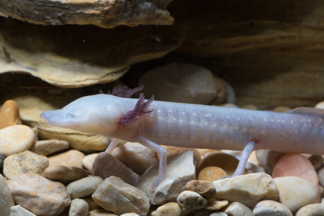 Texas blind salamanders live in total darkness. Although they have eyes, they are located under their skin, leaving them totally blind. This feature allows them to live mainly underwater. They are rarely spotted outside of the water. The salamander will occasionally be pushed to the surface by the springs, but doesn’t stay there long! They are only found in Edwards Aquifer. The aquifer provides a cool and oxygen-rich habitat for the the salamander. Specifically, the salamander can be found in the San Marcos area of the Aquifer. Specifically, the salamander can be found in the San Marcos area of the Aquifer.