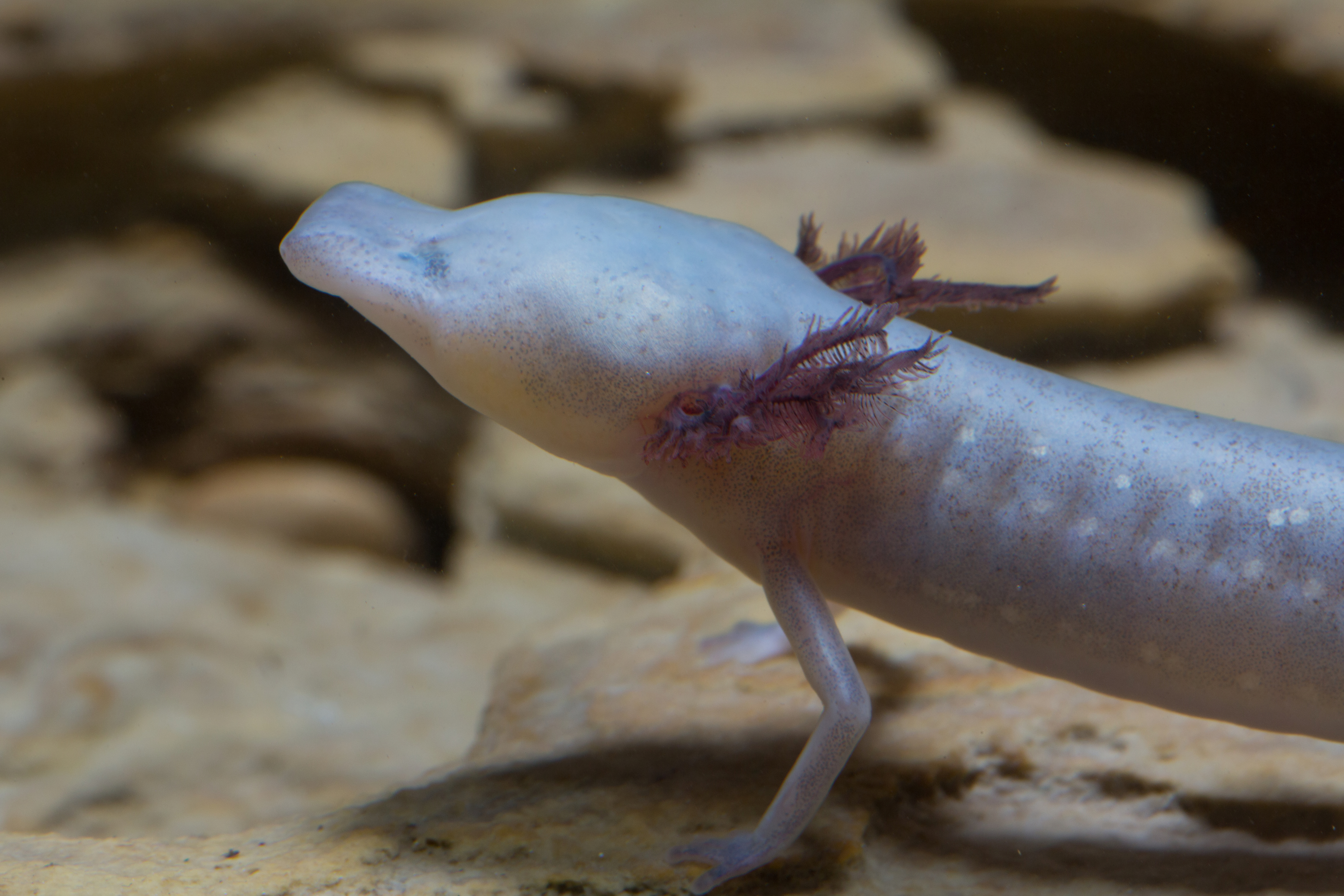 Texas blind salamanders live in total darkness. Although they have eyes, they are located under their skin, leaving them totally blind. This feature allows them to live mainly underwater. They are rarely spotted outside of the water. The salamander will occasionally be pushed to the surface by the springs, but doesn’t stay there long! They are only found in Edwards Aquifer. The aquifer provides a cool and oxygen-rich habitat for the the salamander. Specifically, the salamander can be found in the San Marcos area of the Aquifer. Specifically, the salamander can be found in the San Marcos area of the Aquifer.