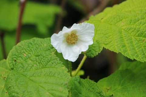 Thimbleberry flower (Rubus parviflorus)
