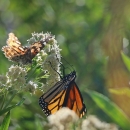 Flowering mule fat trees in Hunter Canyon provide much needed food to local insects and pollinators. Shown here, a Western leaffooted bug (left), a painted lady butterfly (center) and a monarch butterfly share the flowers.