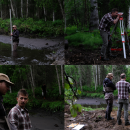 GIS Technician Tim Ericson (top left) and Lyke Byker (top right), a former restoration biologist with the Service who is currently working with NOAA, measure the creek’s slope at a recently completed project. Christian Thorsberg/USFWS.
