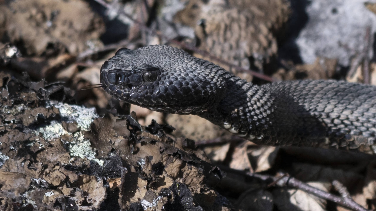 A timber rattlesnake flicking its tongue by Grayson Smith/USFWS.