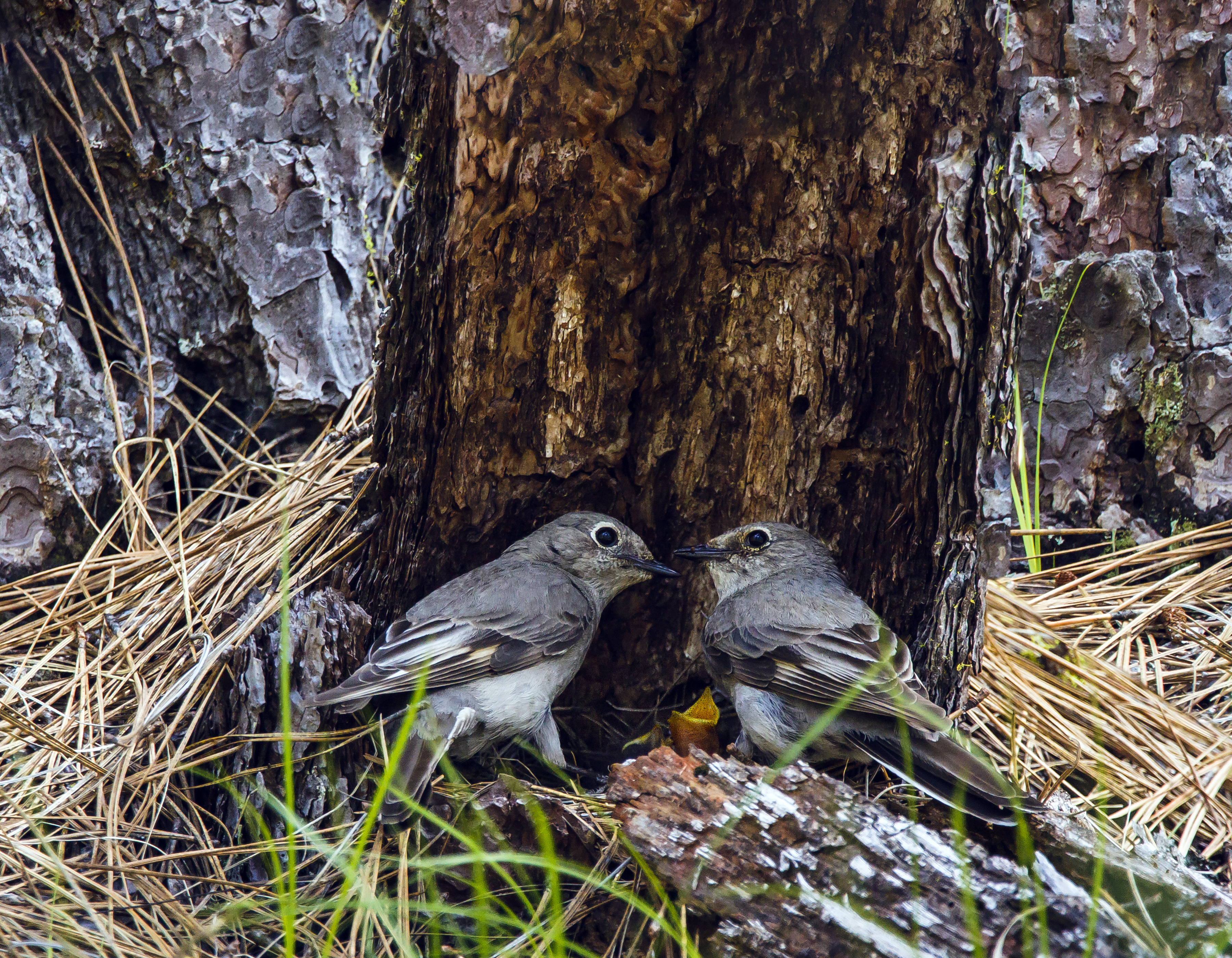 Townsend's Solitaires Feeding Young