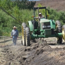 Staff from Watsonville Wetlands Watch and Reiter Berry Farm construct a grassed filter strip on Watsonville Slough Farm to treat tailwater run-off and reduce erosion into adjoining Hanson Slough.