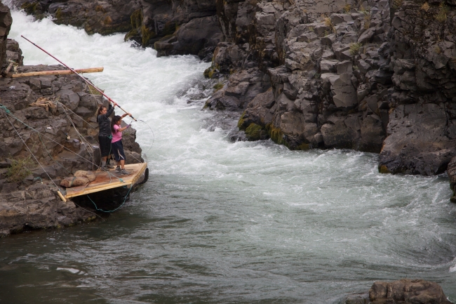 Yakama tribal members fish in the Klickitat river for Fall Chinook salmon. Dip Nets, Traditional Fishing, Columbia River Fishery, Hatchery Columbia River Inter-Tribal Fish Commission