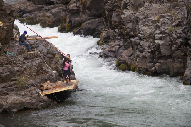 Yakama tribal members fish in the Klickitat River for Fall Chinook salmon. Dip nets, traditional fishing, Columbia River Fishery, Hatchery Columbia River Inter-Tribal Fish Commission. Pacific Northwest Fisheries.