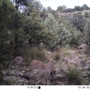 This is one of a series of photos showing a mountain lion stalking an elk. Elk no longer visible, so mountain lion comes out. Photo 6.