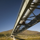 Trans Alaska oil pipeline crossing South fork Koyukuk River, draining into Kanuti National Wildlife Refuge