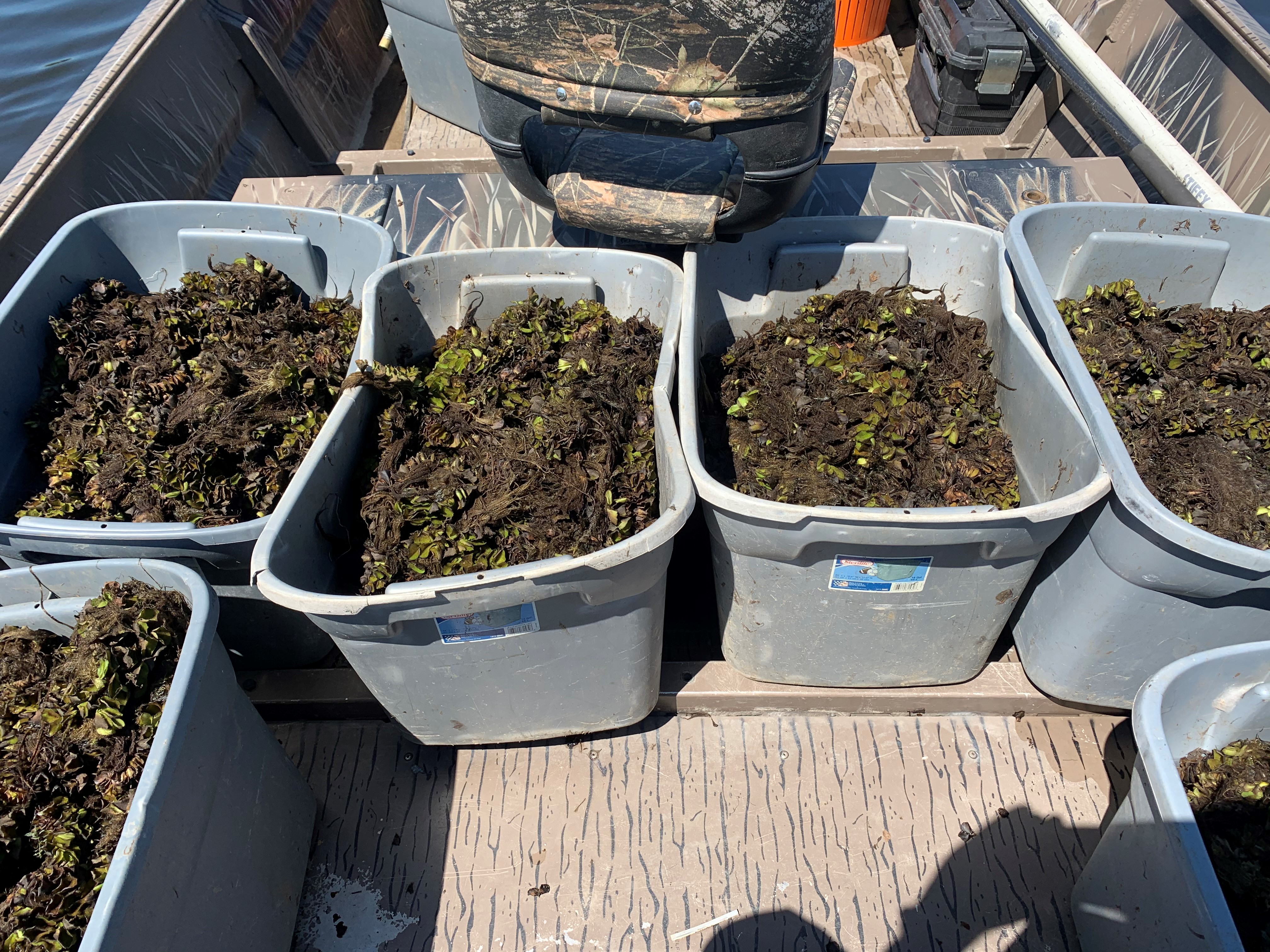Salvinia weevils being transported from local reservoirs to Lake Raven for control of giant salvinia.