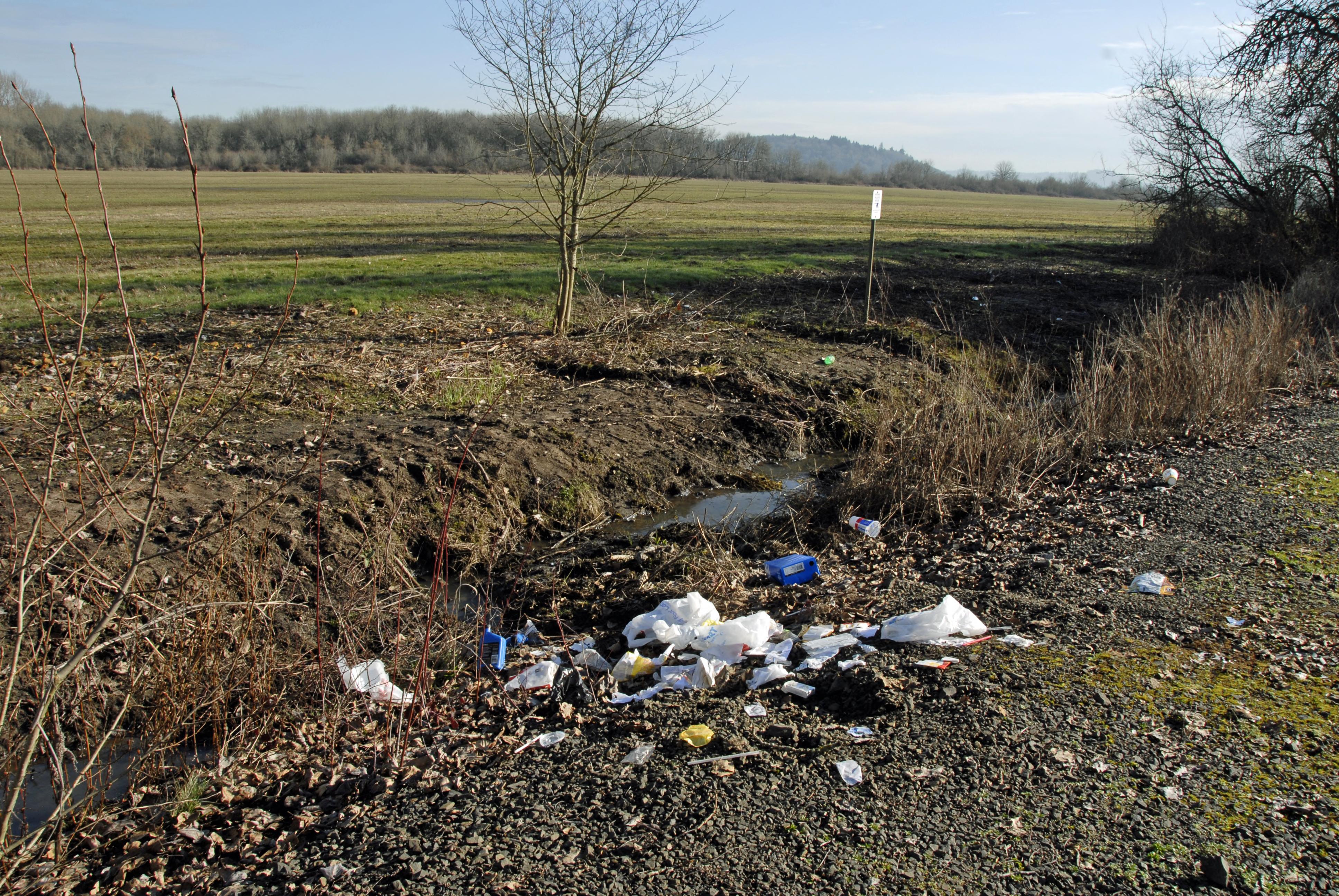 Trash scattered by the road side on the Ankeny National Wildlife Refuge