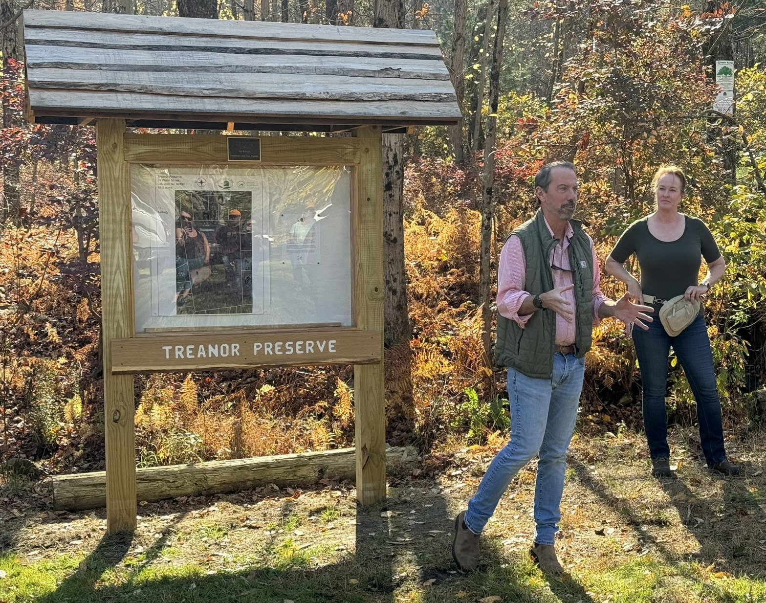 Former property owner Chris Treanor and Tewksbury Land Trust President Kristin Hassett at the Treanor Preserve