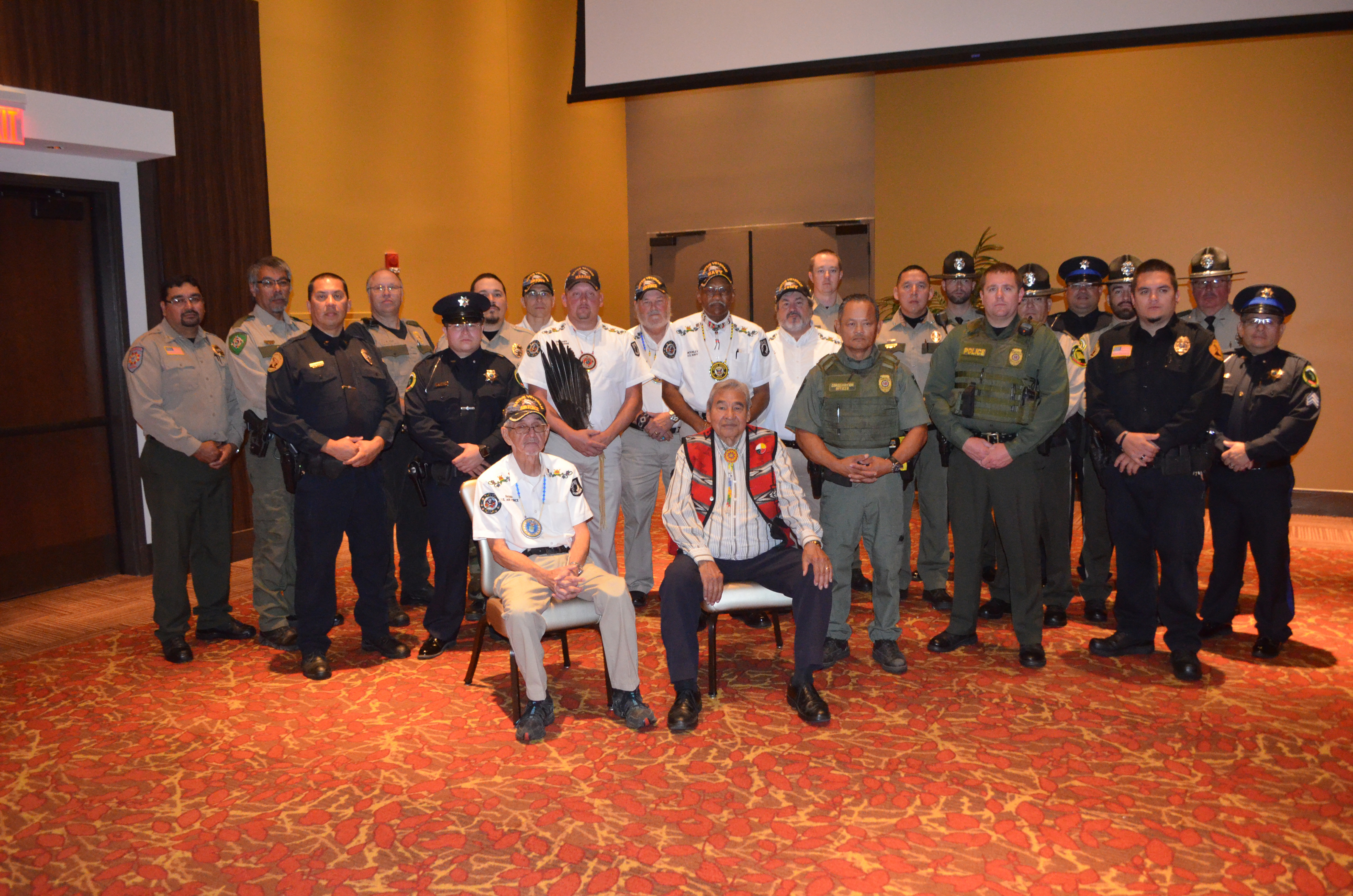 Tribal law enforcement, Conservation Officers and Elders pose for award