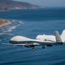 An unmanned aircraft system Triton B-5 flies over Point Mugu, Naval Base Ventura County.