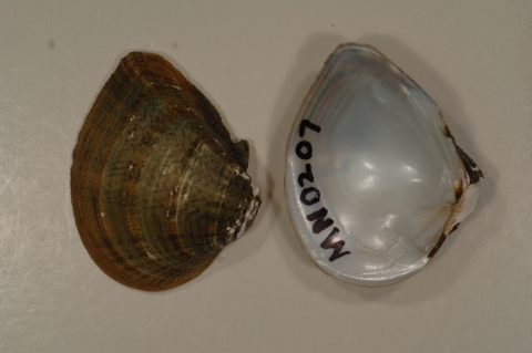 NCTC Freshwater Mussels Teaching Collection: Order: Unionoida Family: Unionidae Genus (ITIS): Truncilla Species: truncata Williams et al.: Use to be: Location Name: St. Croix River, 2 mi. SW St. Croix Falls, Interstate State Park, Chicago County Locatio