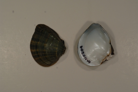 NCTC Freshwater Mussels Teaching Collection: Order: Unionoida Family: Unionidae Genus (ITIS): Truncilla Species: truncata Williams et al.: Use to be: Location Name: St. Croix River, 2 mi. SW St. Croix Falls, Interstate State Park, Chicago County Locatio