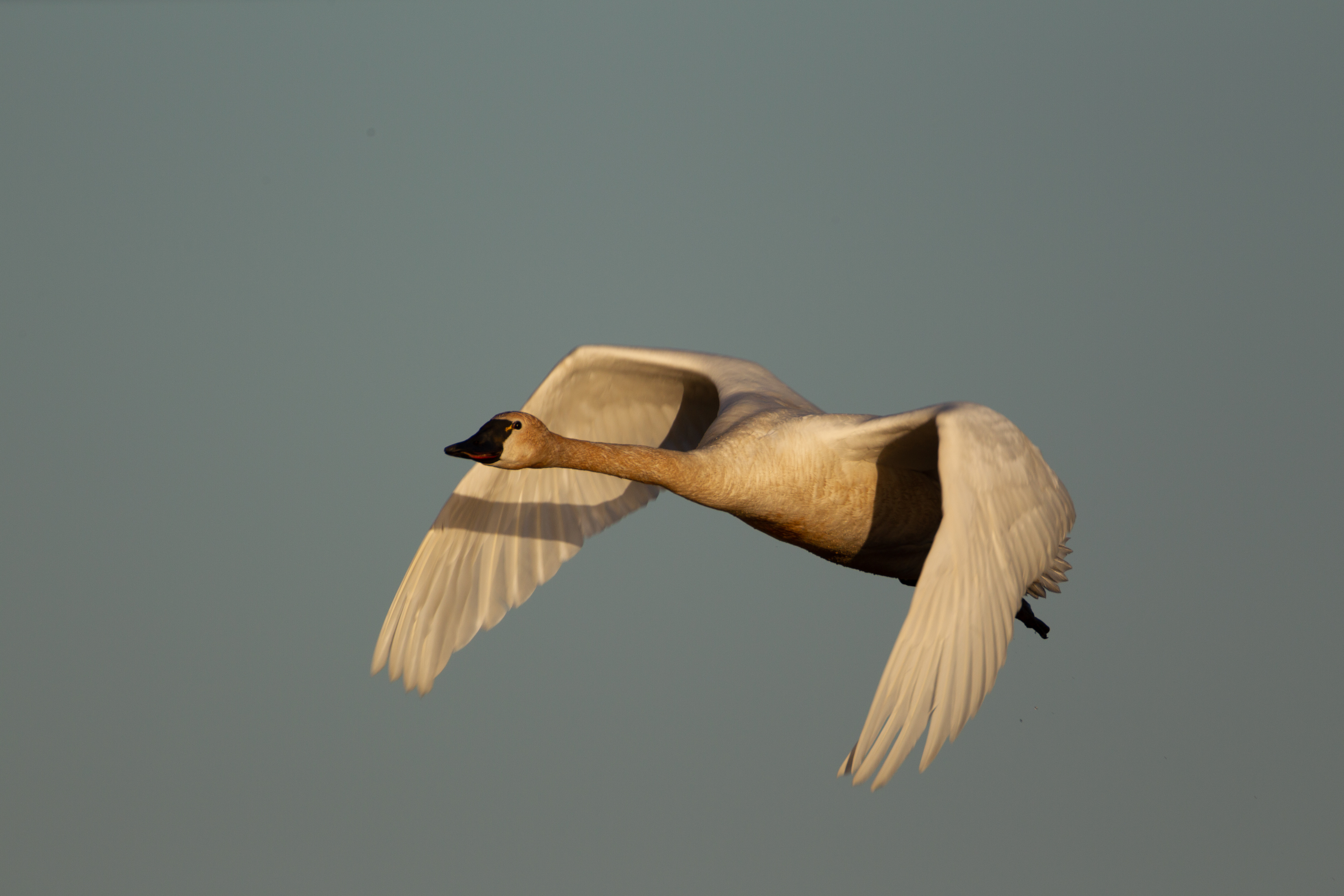 Tundra swan in flight