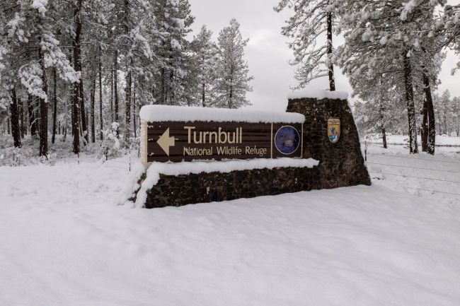 Turnbull NWR - Snowy Entrance Sign