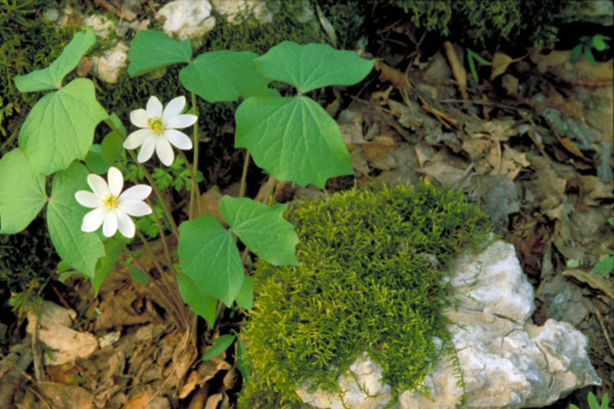 White blossoms and green leaves in clump by mossy rock. For additional resources about wildflowers visit the National Plants Database: National Plants Database http://plants.usda.gov/.